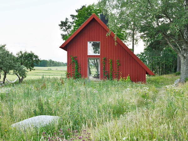 På torpargrund en bottenvåning med ursprunglig takhöjd och fönsterplacering — nu med våningshöga glasskjutdörrar infällda i djupa nischer. Obehandlade trätrappor vid alla dörrar. Såpskurade grantiljor med en centralt placerad, öppen härd i handslaget tegel murad i golvnivå. Ett rostfritt, fristående kök i två delar som kan kopplas samman genom uppfällbara klaffar. Eldstadens kåpa döljer trappan upp till övervåningen — ett högt rum med skjutfönster i golvnivå för takhöjd och utblick vid sittande och liggande.